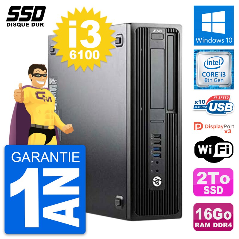 PC HP WorkStation Z240 SFF Intel Core i3-6100 RAM 16Go SSD 2To Windows 10 Wifi