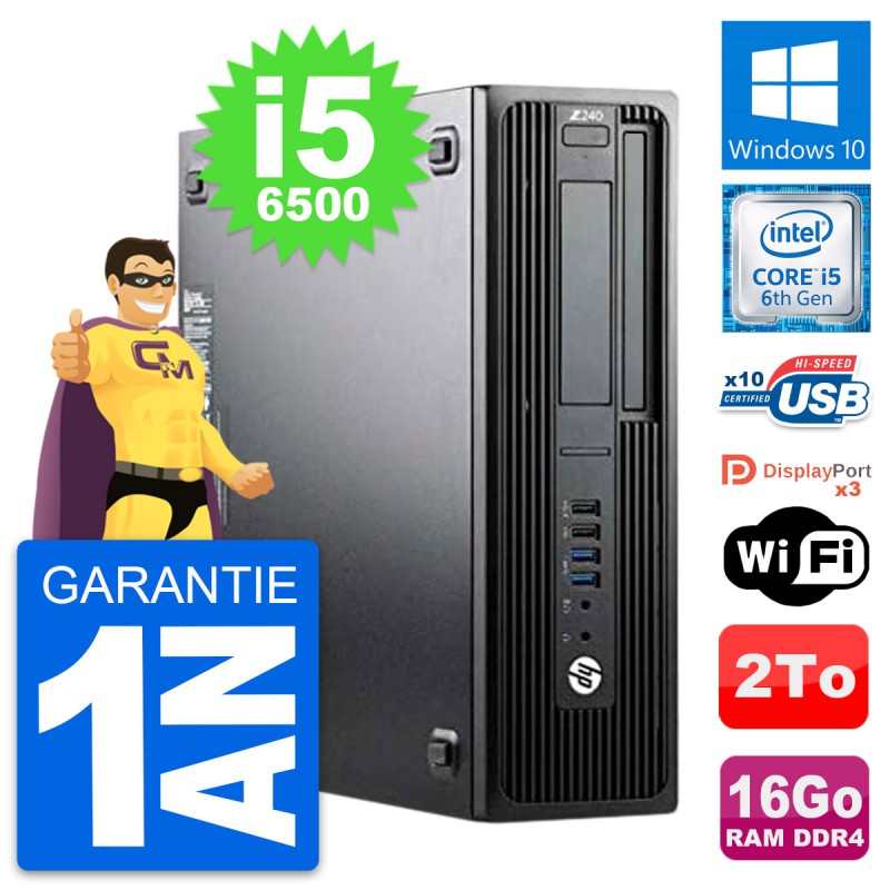PC HP WorkStation Z240 SFF - Intel Core i5-6500 3.2 Ghz (6 Mo) - 16 Go DDR4 - Disque Dur 3,5" 2 To - Clef Wifi USB - Windows 10 - Garantie 1 an.
