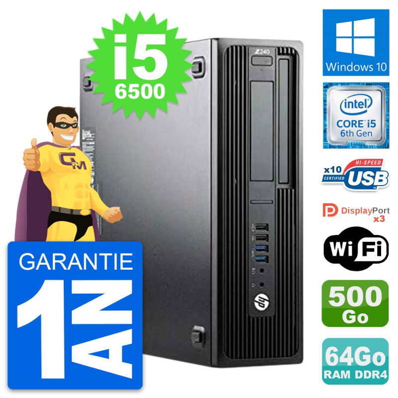 PC HP WorkStation Z240 SFF Intel i5-6500 RAM 64Go Disque 500Go Windows 10 Wifi