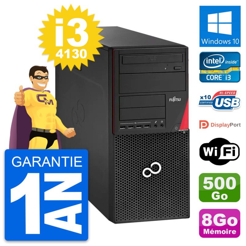 PC Tour Fujitsu Esprimo P920 - Intel Core i3-4130 3.4 Ghz (3 Mo) - 8 Go DDR3 - Disque Dur 3,5" 500 Go - Graveur DVD - Clef Wifi USB - Windows 10 - Garantie 1 an.