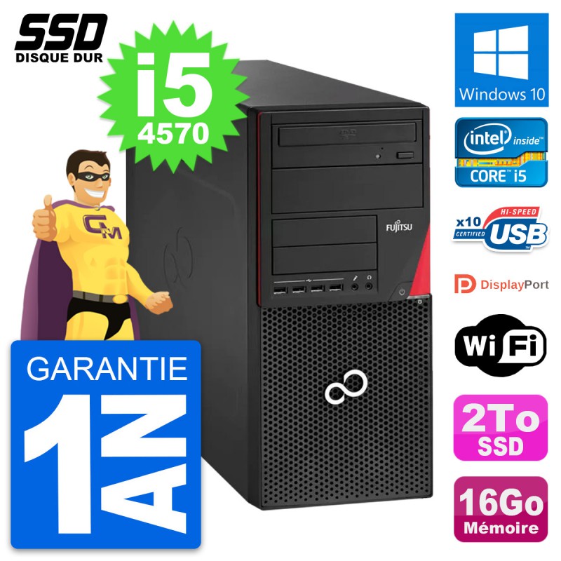 PC Tour Fujitsu Esprimo P920 - Intel Core i5-4570 3.2 Ghz (6 Mo) - 16 Go DDR3 - SSD 2 To - Graveur DVD - Clef Wifi USB - Windows 10 - Garantie 1 an.