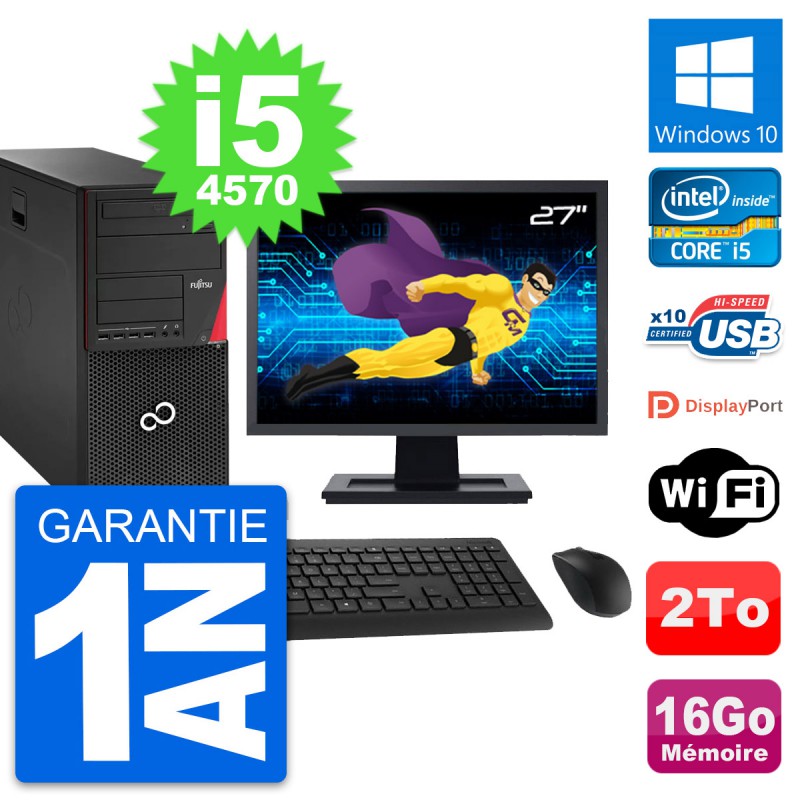 PC Tour Fujitsu Esprimo P920 - Intel Core i5-4570 3.2 Ghz (6 Mo) - 16 Go DDR3 - Disque Dur 3,5" 2 To - Graveur DVD - Clef Wifi USB - Windows 10 - Livré avec Ecran 27" + clavier + souris (Marques et modèles variables) - Garantie 1 an.