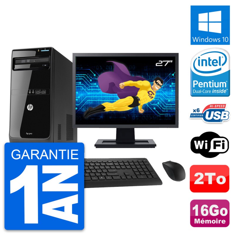 PC Tour HP Pro 3400 MT - Intel Pentium Dual-Core G630 2.7 Ghz (3 Mo) - 16 Go DDR3 - Disque Dur 3,5" 2 To - Graveur DVD - Clef Wifi USB - Windows 10 - Livré avec Ecran 27" + clavier + souris (Marques et modèles variables) - Garantie 1 an.