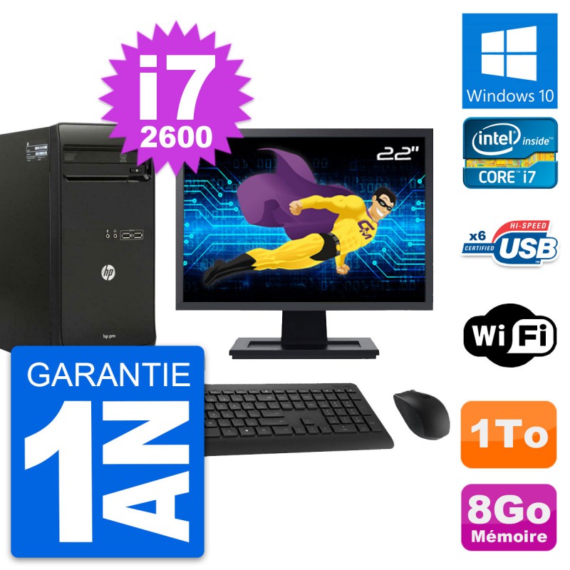 PC Tour HP Pro 3400 MT Ecran 22" Core i7-2600 RAM 8Go Disque 1To Windows 10 Wifi