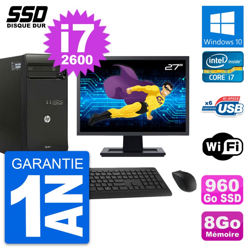 PC Tour HP Pro 3400 MT Ecran 27" Core i7-2600 RAM 8Go SSD 960Go Windows 10 Wifi