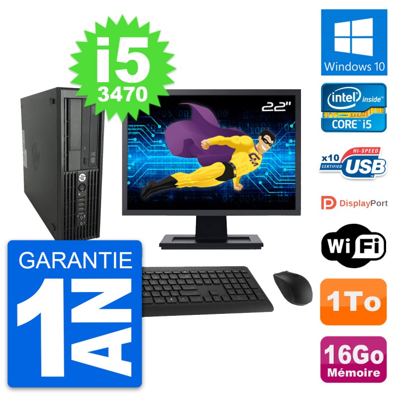 PC HP WorkStation Z220 SFF Ecran 22" i5-3470 RAM 16Go Disque 1To Windows 10 Wifi