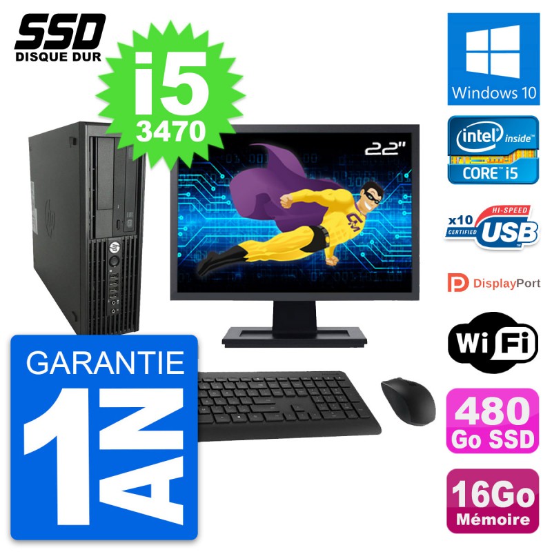 PC HP WorkStation Z220 SFF Ecran 22" i5-3470 RAM 16Go SSD 480Go Windows 10 Wifi