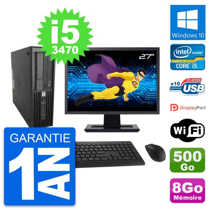 PC HP Z220 SFF Ecran 27" Intel i5-3470 RAM 8Go Disque Dur 500Go Windows 10 Wifi