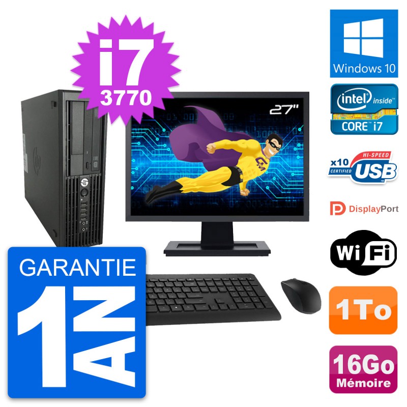 PC HP WorkStation Z220 SFF Ecran 27" i7-3770 RAM 16Go Disque 1To Windows 10 Wifi