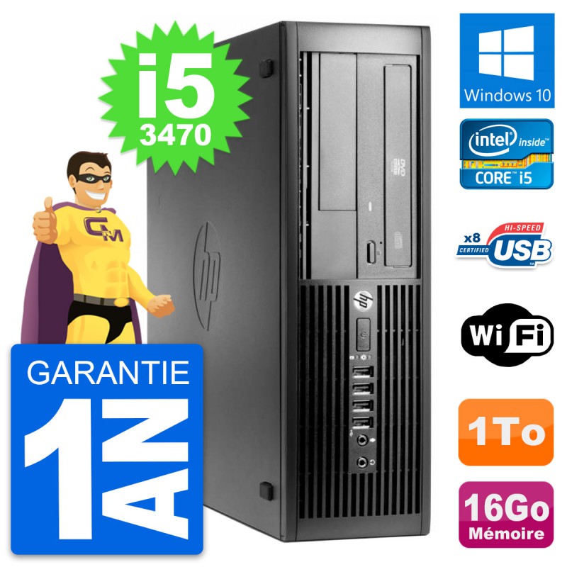 PC HP Compaq Pro 4300 SFF - Intel Core i5-3470 3.2 Ghz (6 Mo) - 16 Go DDR3 - Disque Dur 3,5" 1 To - Graveur DVD - Clef Wifi USB - Windows 10 - Garantie 1 an.