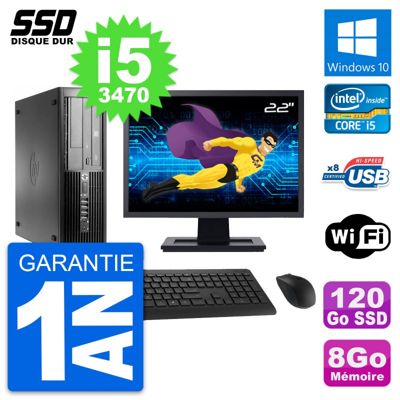 PC HP Compaq Pro 4300 SFF - Intel Core i5-3470 3.2 Ghz (6 Mo) - 8 Go DDR3 - Disque Dur SSD 120 Go - Graveur DVD - Clef Wifi USB - Windows 10 - Livré avec Ecran 22" + clavier + souris (Marques et modèles variables) - Garantie 1 an.