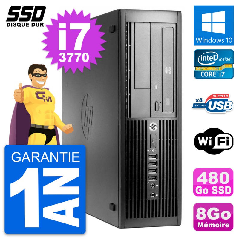 PC HP Compaq Pro 4300 SFF - Intel Core i7-3770 3.4 Ghz (8 Mo) - 8 Go DDR3 - Disque Dur SSD 480 Go - Graveur DVD - Clef Wifi USB - Windows 10 - Garantie 1 an.
