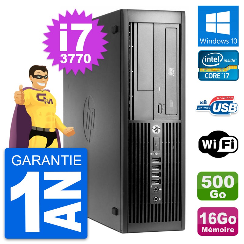 PC HP Compaq Pro 4300 SFF - Intel Core i7-3770 3.4 Ghz (8 Mo) - 16 Go DDR3 - Disque Dur 3,5" 500 Go - Graveur DVD - Clef Wifi USB - Windows 10 - Garantie 1 an.