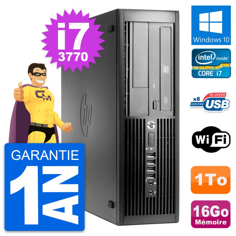 PC HP Compaq Pro 4300 SFF - Intel Core i7-3770 3.4 Ghz (8 Mo) - 16 Go DDR3 - Disque Dur 3,5" 1 To - Graveur DVD - Clef Wifi USB - Windows 10 - Garantie 1 an.