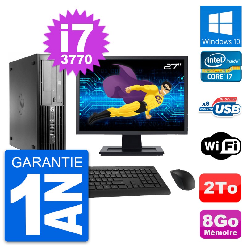 PC HP Compaq Pro 4300 SFF - Intel Core i7-3770 3.4 Ghz (8 Mo) - 8 Go DDR3 - Disque Dur 3,5" 2 To - Graveur DVD - Clef Wifi USB - Windows 10 - Livré avec Ecran 27" + clavier + souris (Marques et modèles variables) - Garantie 1 an.