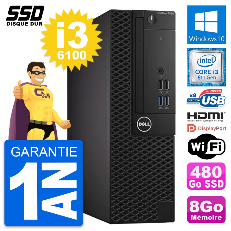 PC Dell OptiPlex 3050 SFF Core i3-6100 RAM 8Go SSD 480Go HDMI Windows 10 Wifi