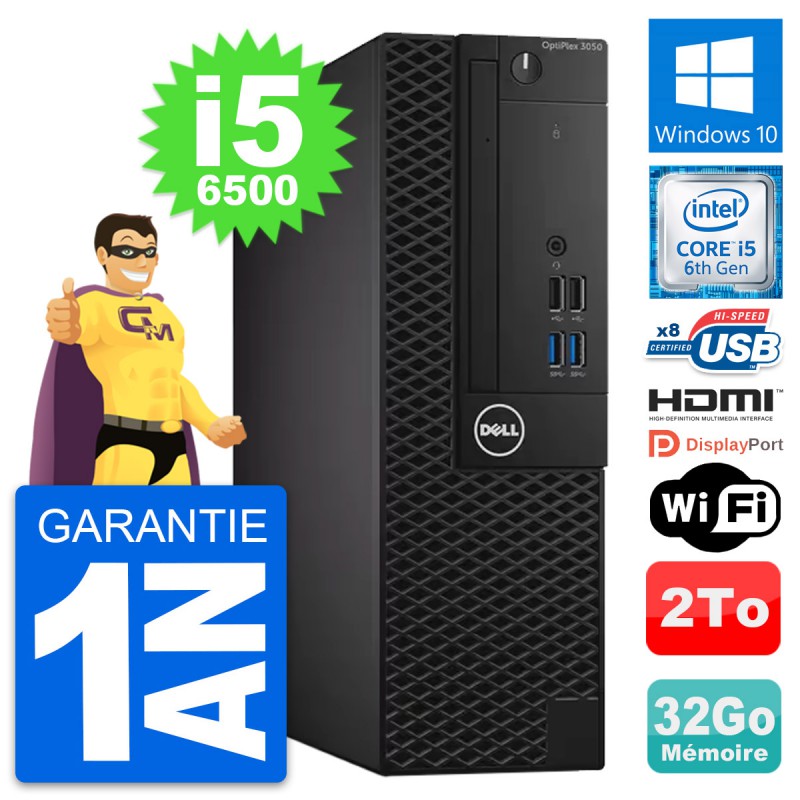 PC Dell OptiPlex 3050 SFF Intel i5-6500 RAM 32Go Disque 2To HDMI Windows 10 Wifi