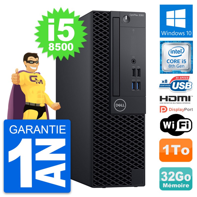 PC Dell OptiPlex 3060 SFF Intel i5-8500 RAM 32Go Disque 1To HDMI Windows 10 Wifi