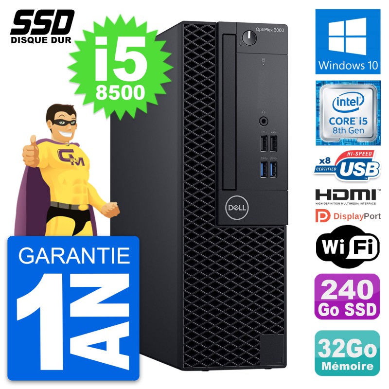 PC Dell OptiPlex 3060 SFF Intel i5-8500 RAM 32Go SSD 240Go HDMI Windows 10 Wifi