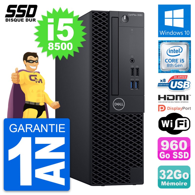 PC Dell OptiPlex 3060 SFF Intel i5-8500 RAM 32Go SSD 960Go HDMI Windows 10 Wifi